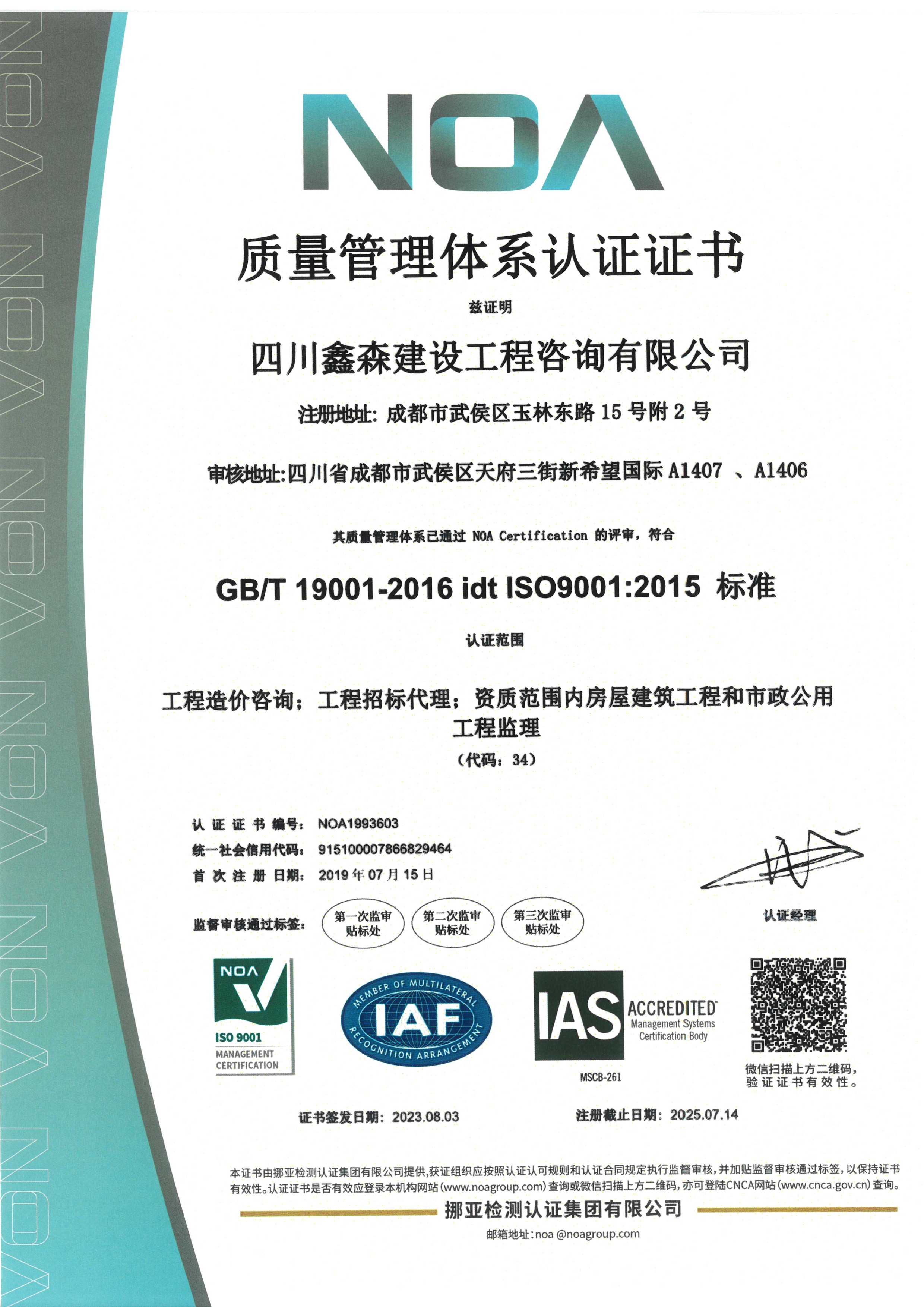 2023年质量管理体系认证证书-四川全过程工程咨询, 四川全过程咨询机构, 四川工程造价公司, 成都全过程咨询机构, 成都全过程工程咨询, 成都工程造价咨询公司, 成都工程造价公司, 四川全过程工程咨询, 四川全过程咨询机构, 四川工程造价咨询公司, 四川工程造价公司, 成都全过程咨询机构, 成都全过程工程咨询, 成都工程造价公司, 成都工程造价咨询公司