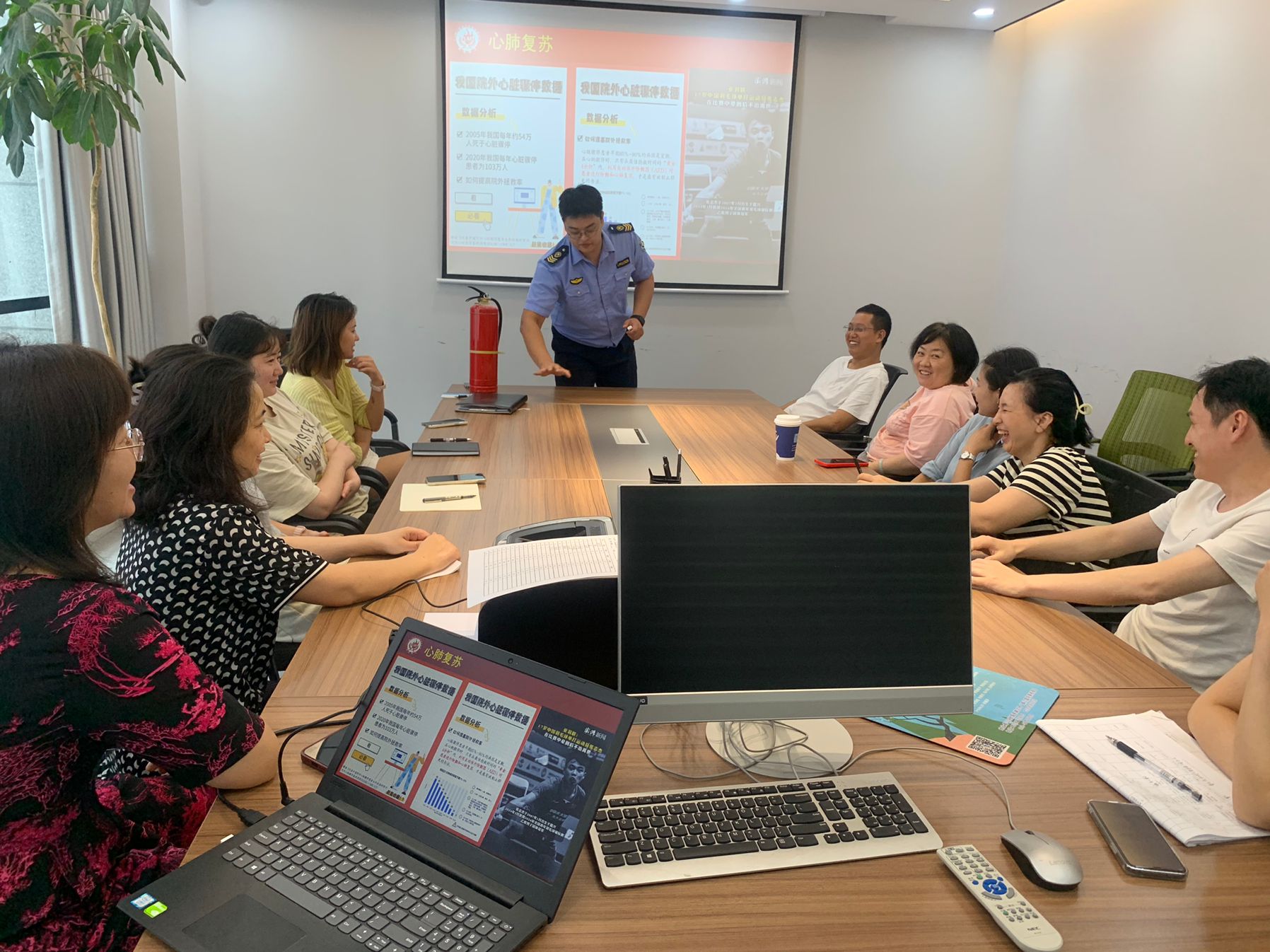 欢迎利民消防中心康明教官来我公司进行消防安全培训和防震演练,让JBO官网加深了消防安全和防震知识。